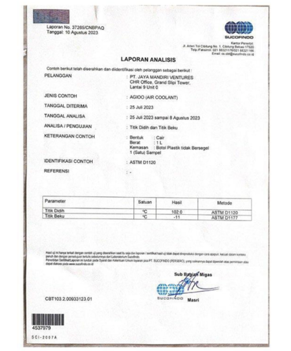Teruji ASTM D1120, D1170, D1384, D4340, D2809 – Standar Internasional Coolant